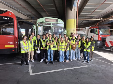 Per finalitzar la visita, l’alumnat en pràctiques també ha pogut gaudir d’alguns autobusos històrics del museu de TMB, entre els quals hi havia el Bus de la pel·lícula d’El 47. Tots els i les estudiants van poder pujar-hi i gaudir de l’experiència. Al llarg de tota la visita, l'alumnat en pràctiques ha mostrat molt d'interès plantejant diverses qüestions sobre el CON de Triangle i la flota de Bus.