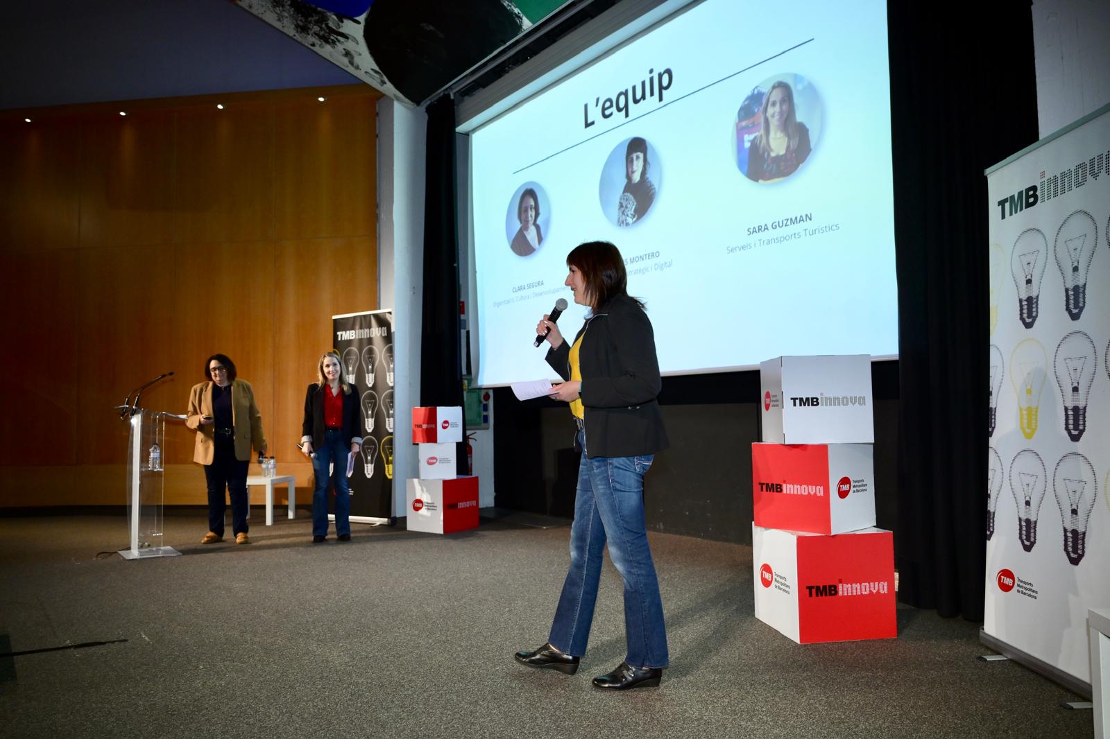 La jornada ha començat amb la benvinguda a càrrec de la directora d’Innovació i Transformació Digital de TMB, Margarida López, i tot seguit ha agafat el relleu, Gonzalo Riffo, responsable d’Innovació Corporativa i Intraprenedoria, que ha sigut la persona encarregada de presentar tot l’acte de cloenda del Repte. Seguidament, Cristina Güell, directora Àrea de Serveis Corporatius, i Nazaret González, directora de l’Àrea per a les persones, han destacat la importància del Repte d’enguany i “la transversalitat d’un projecte que posa a les persones al centre de tot”. A més, Nazaret González, ha recordat la jornada del Demo Day, “un gran dia per trobar-nos i conèixer en un mateix espai tots els projectes de la GenTMB a la vegada”.